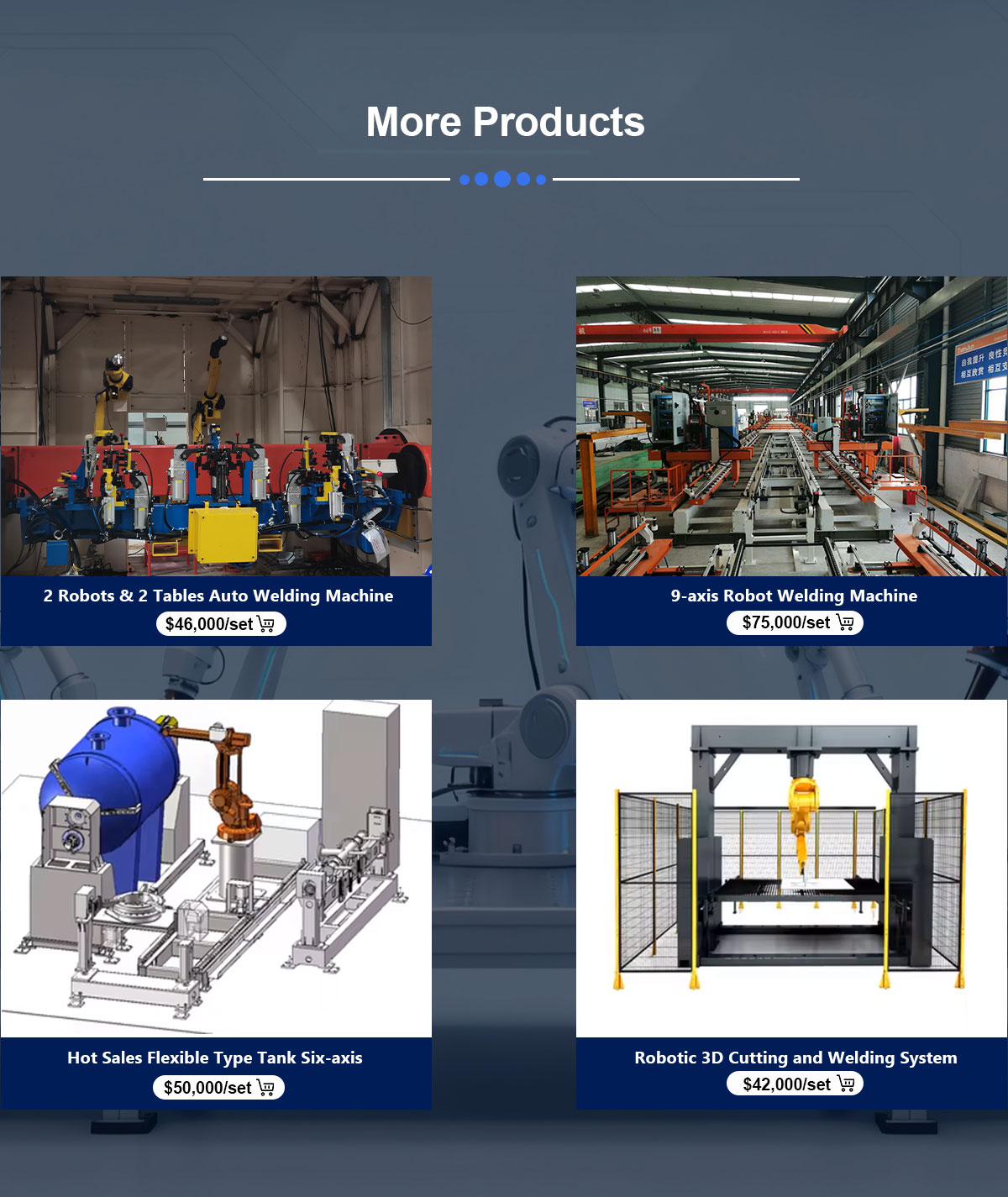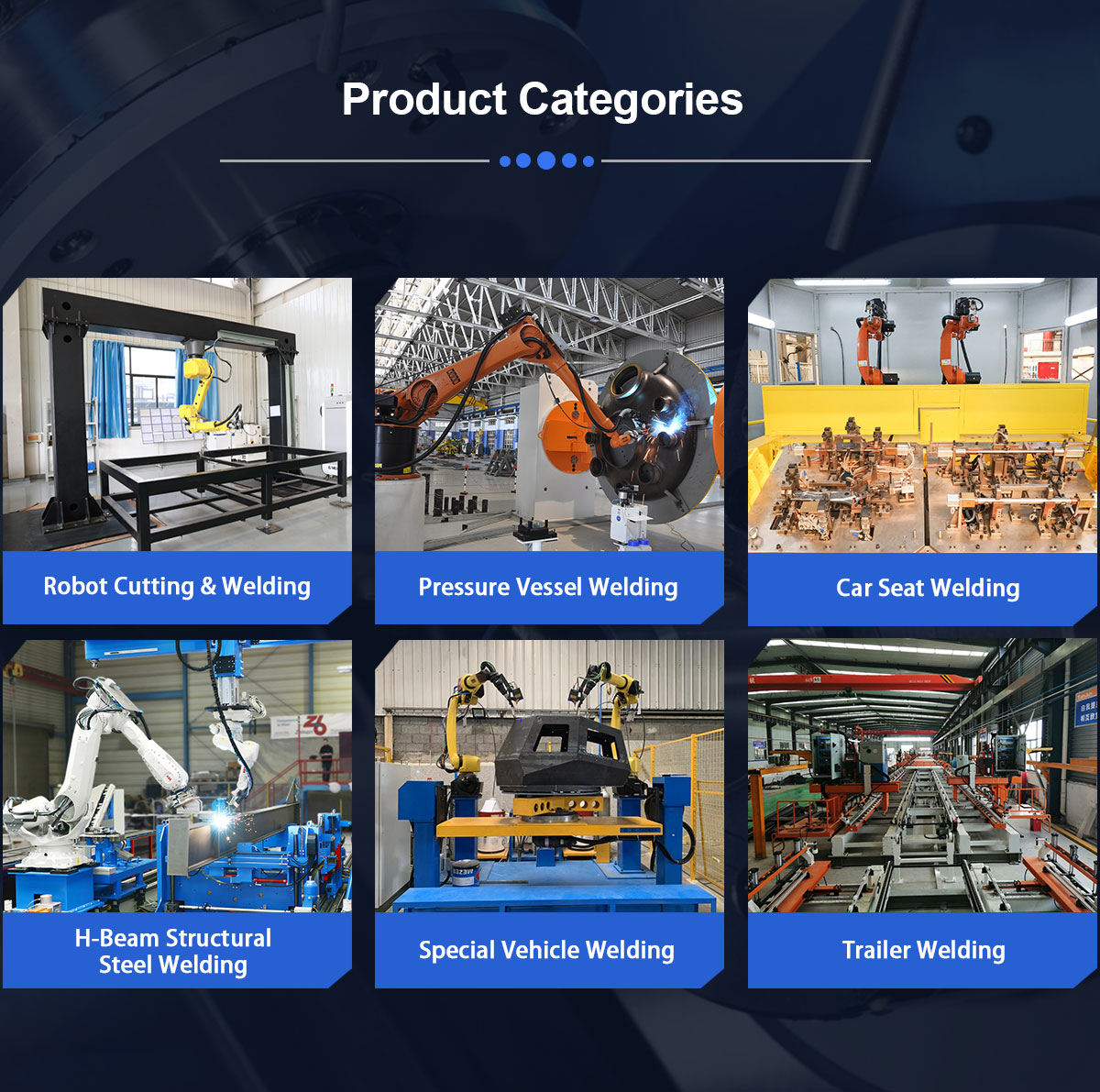 Productos principales:Robot industrial de 6 ejes, co-robot, máquina de soldadura automática, máquina de corte por láser automática, máquina de carga de paletización automática